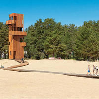 В начале лета туристы оценили итоги работ. На фото попала башня со смотровой площадкой, кабинки для переодевания и деревянный помост над песком.
